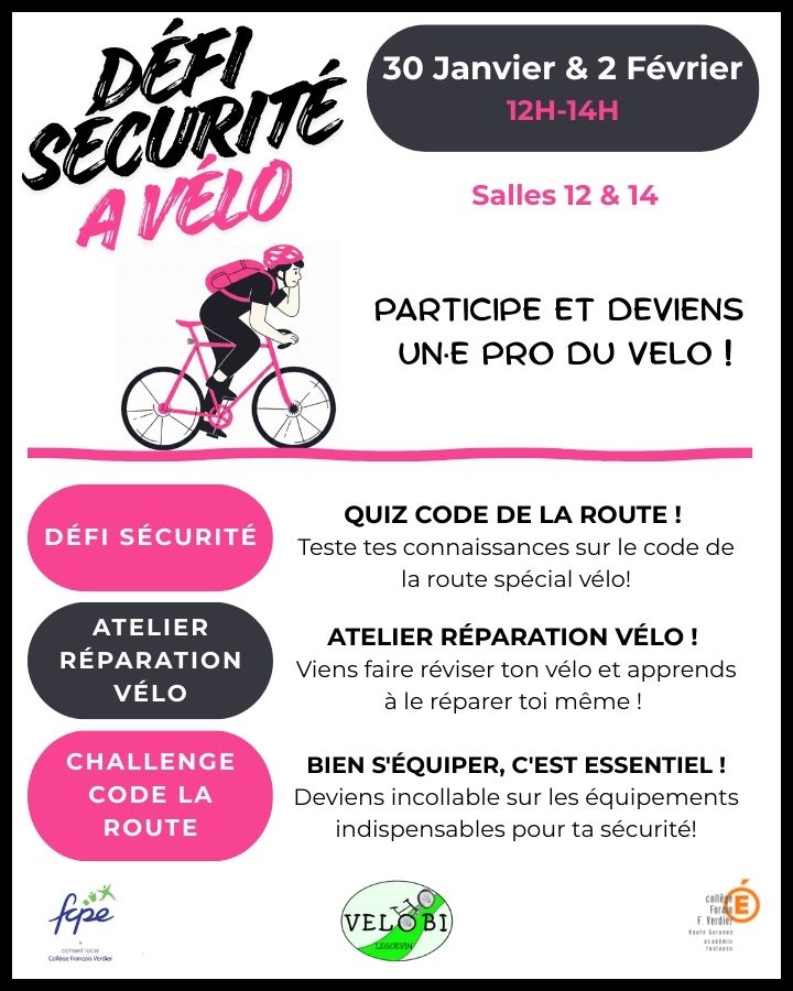 Défi sécurité à vélo - Le 30 janvier et le 2 février