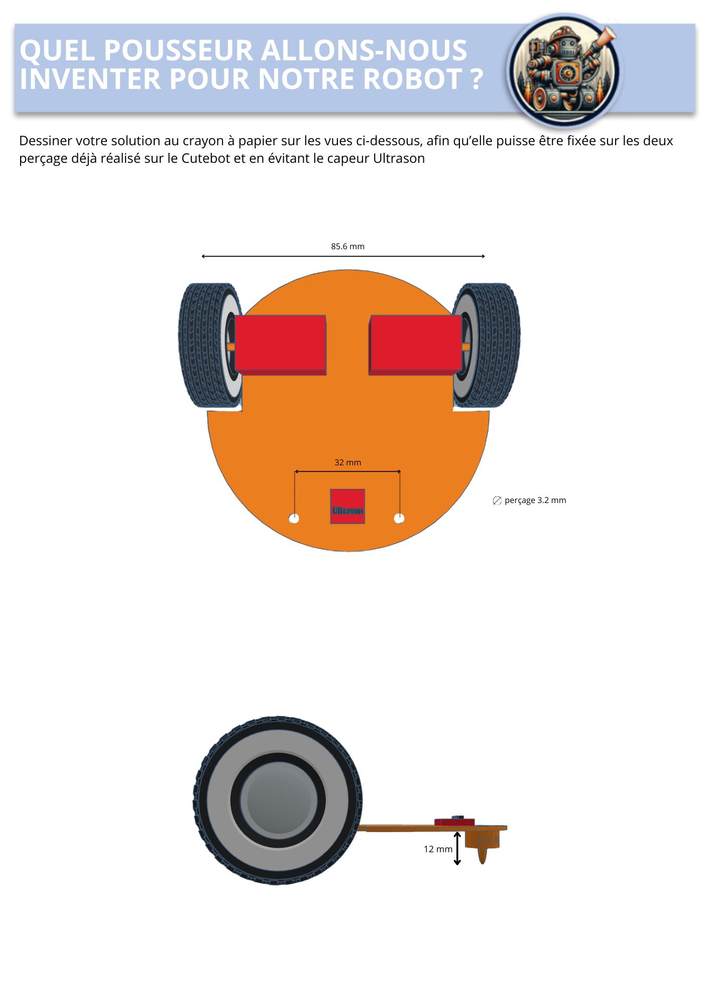 Nous devons ajouter une nouvelle fonctionnalité au Cutebot afin qu’il puisse pousser ou déplacer des obstacles. Pour cela, vous devrez :