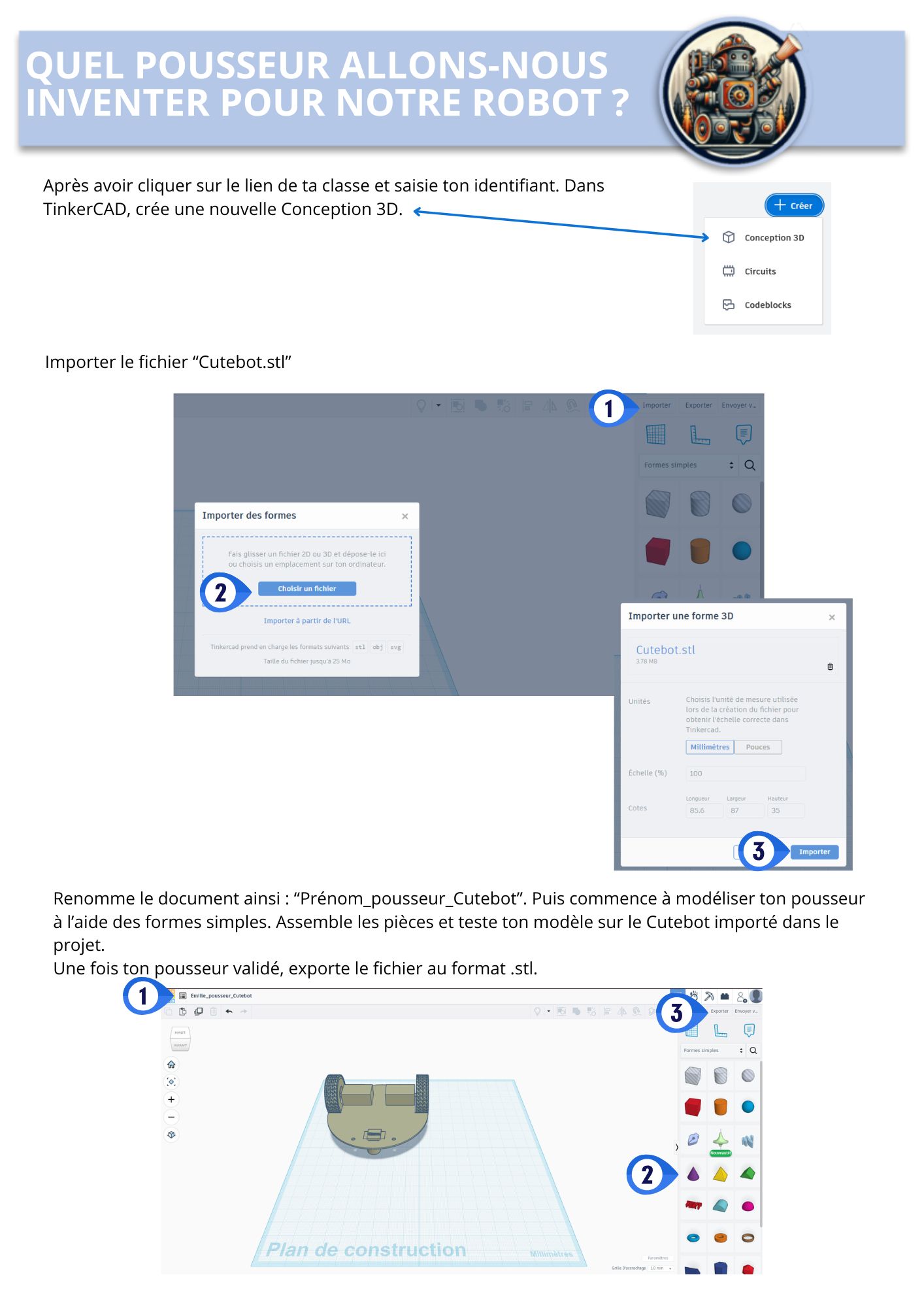 Fichier Cutebot-Tinkercad |