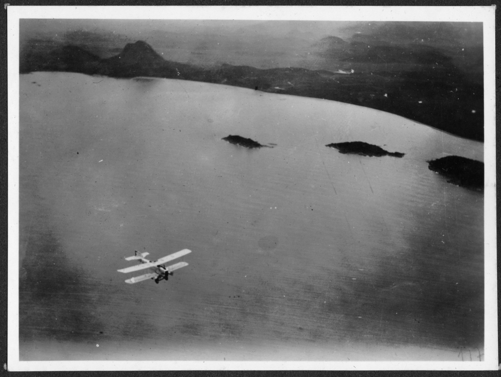 Breguet XIV F-POST survolant une étendue d'eau (crédit Jean-Claude Nivet) |