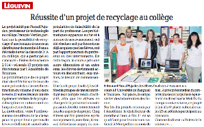 Projet réalisé avec la classe de 3emeA. Suite aux qualifications académiques à l'université de Toulouse rangueil, le projet soutenu par 5 élèves de la classe à remporté la 5eme place lors de la finale nationale à Montpellier.