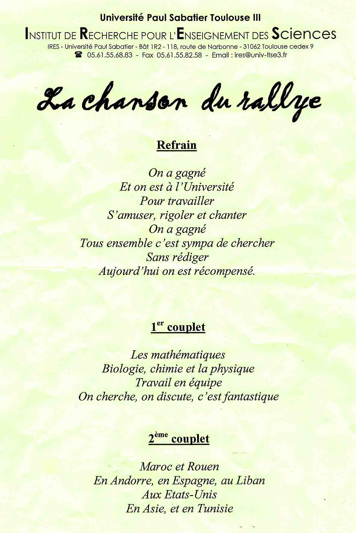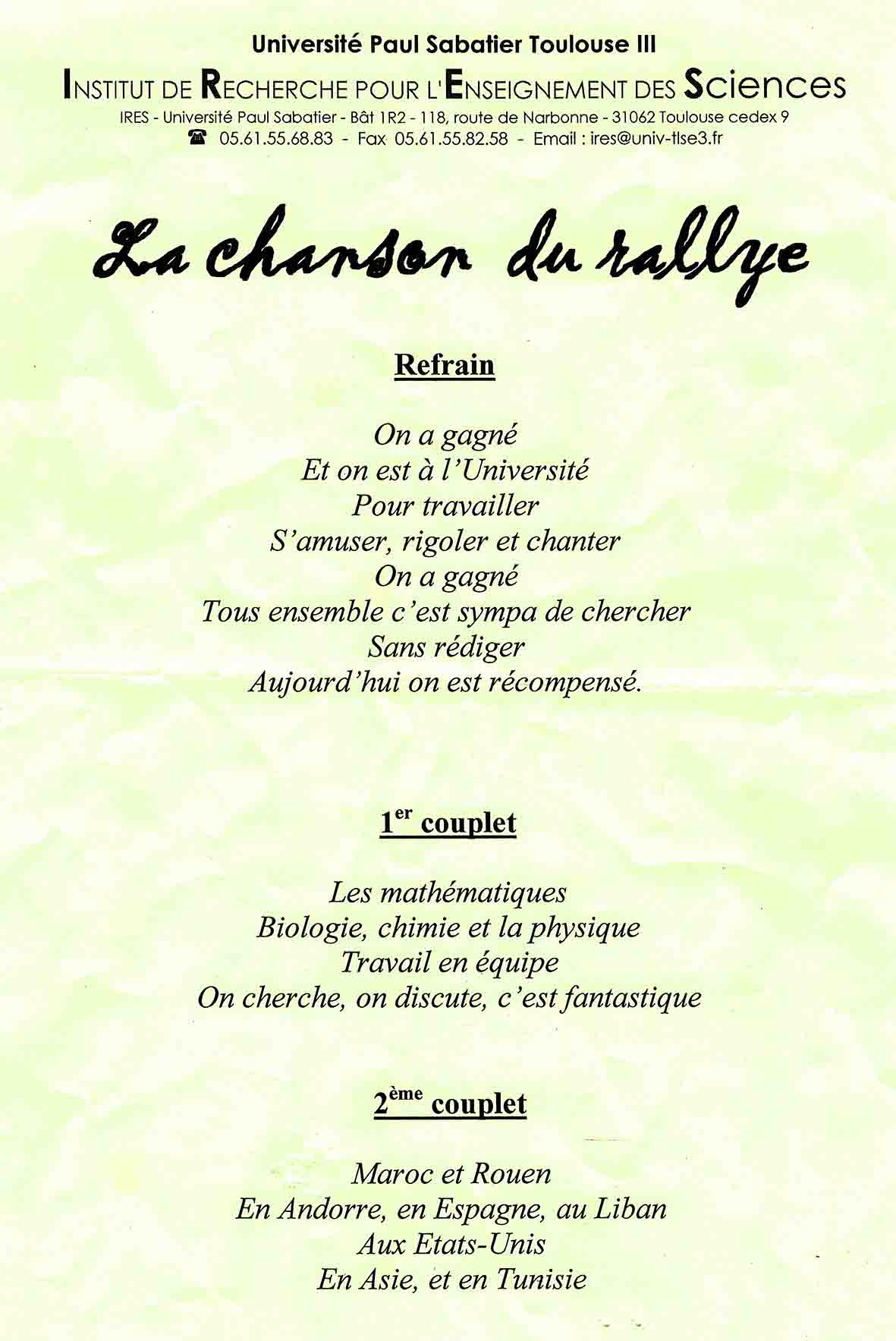 Ce rallye est un concours scientifique qui s'adresse aux élèves du primaire et du secondaire. Un candidat est une classe entière, dans laquelle tous les élèves doivent communiquer et participer à la solution retenue.