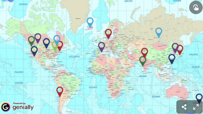 Sur la carte ci-dessous, passez votre souris sur le pays ou état de votre correspondant